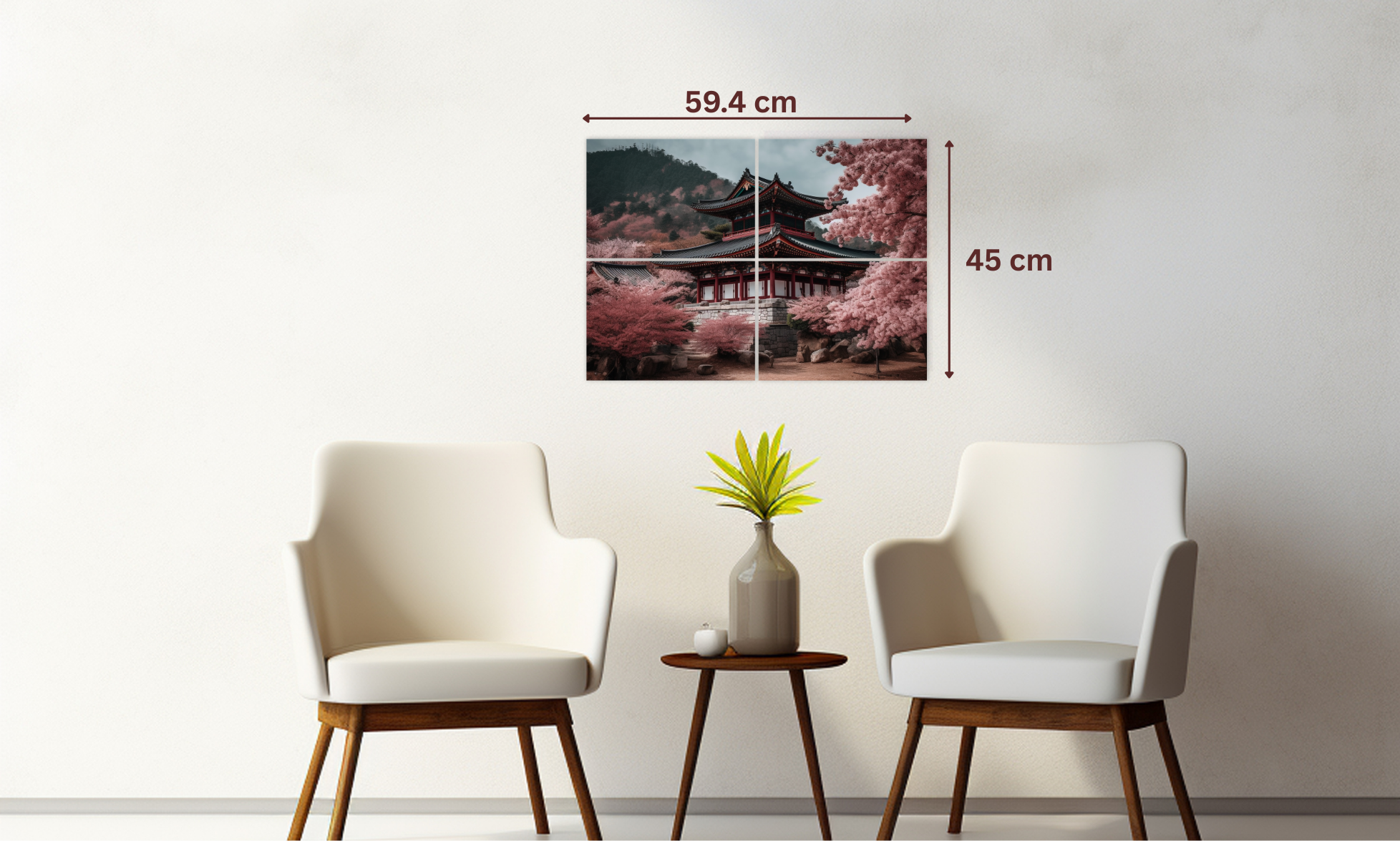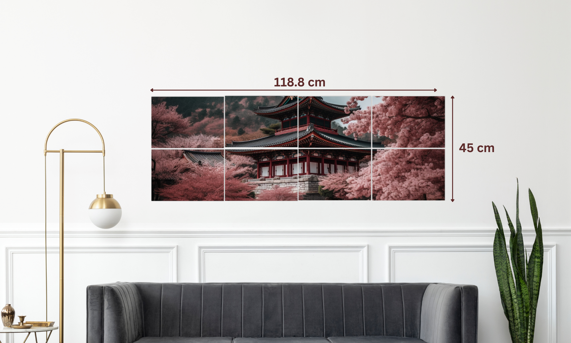 Ce modèle représente un temple japonais entouré de cerisiers en fleurs (sakura), dans une atmosphère calme et poétique. Il apporte une touche naturelle, relaxante et raffinée à votre décoration intérieure.